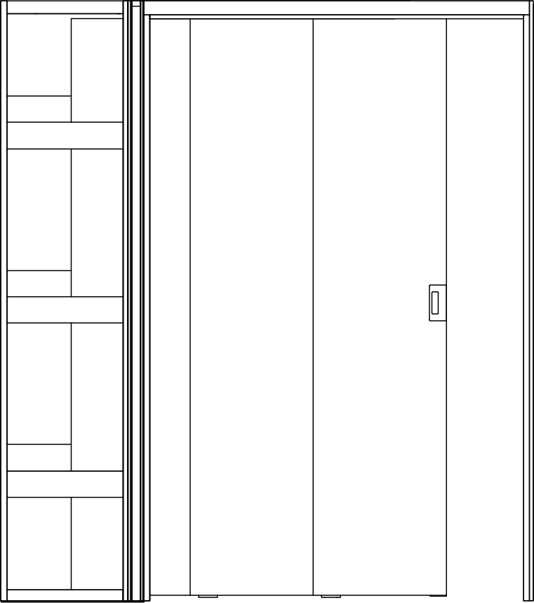 - Door collection system links doors so there are no floor tracks or guides through the opening.