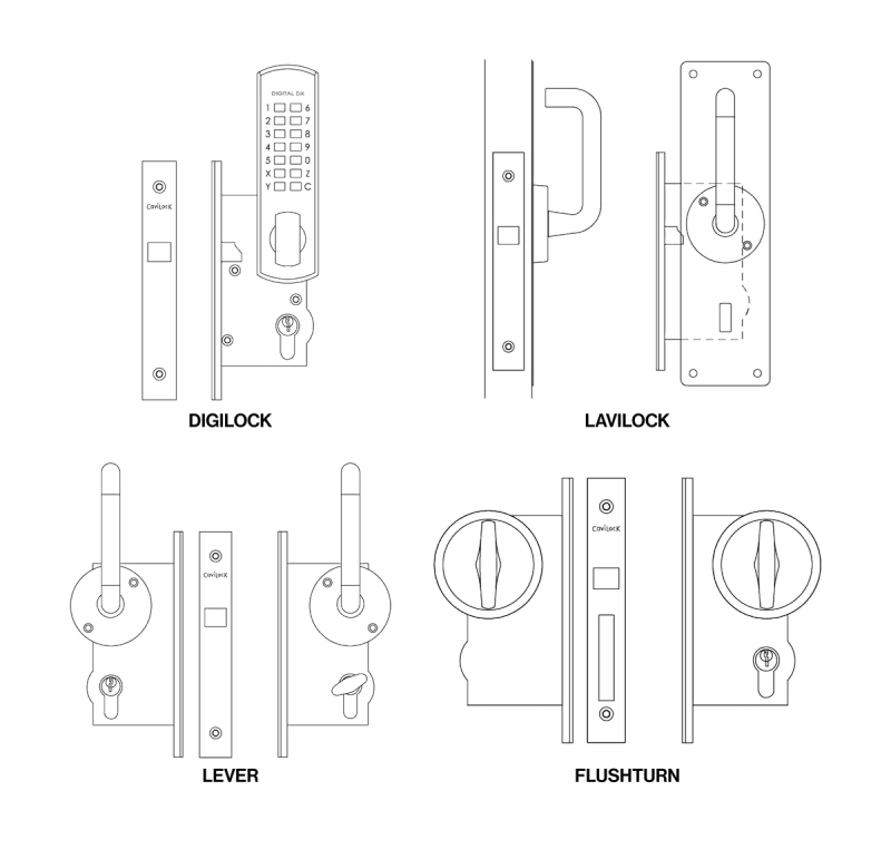 Sleek Design: CaviLock CL100 sliding door handles combine our high quality mortice lock with a versatile combination of furniture options, including LaviLock, Lever, DigiLock and FlushTurn. Latching or cylinder locking options are available, providing various levels of security and convenience.