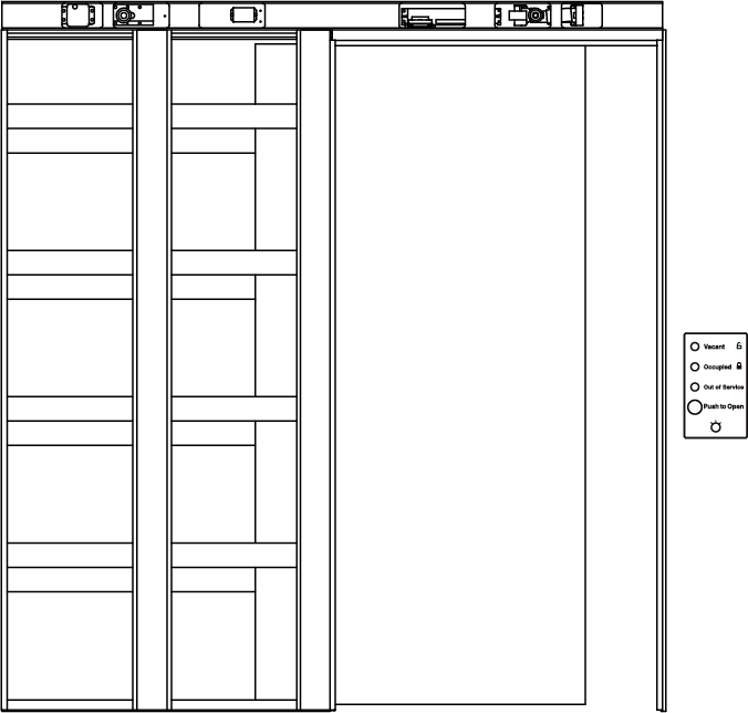 A variety of access control options are available, from simple push button or overhead sensor to secure entry via touch pad, swipe key or a combination of methods. In the event of power failure, the door can be manually opened or a battery backup can be supplied, for example: